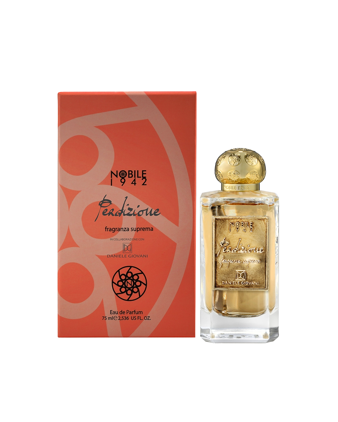 Nobile 1942 Perdizione Eau de Parfum è un profumo agrumato unisex. Ecco un'avventura olfattiva avvolgente e avvincente, dove la vaniglia si mescola armoniosamente con un bouquet fiorito, trasportandoti in un mondo di seducente sensualità. Mentre in La Danza delle Libellule Eau de Parfum la vaniglia è accarezzata dalla freschezza della mela verde, in Perdizione Eau de Parfum questa preziosa nota viene esaltata da un'avvolgente sinfonia floreale, che avvolge i sensi con la sua eleganza e la sua profonda intensità. Il cuore del profumo è un giardino segreto, dove rose e fiori d'arancio danzano delicatamente insieme, creando un'atmosfera di lussuriosa opulenza. Il legno di cedro aggiunge un tocco di calda nobiltà, mentre la vaniglia, con il suo dolce ricordo d'infanzia, ci accompagna in un viaggio verso la perduta pace interiore. Perdizione Eau de Parfum è un'esperienza sensoriale che ti invita a lasciarti andare al piacere e alla bellezza del momento presente.